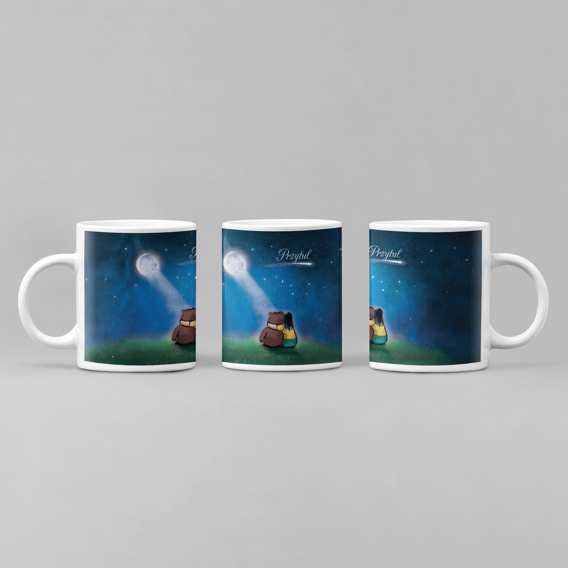 Na tym kubku znalazła się nastrojowa ilustracja z płyty „Przytul” – nocne niebo, księżyc i dwie postacie wtulone w siebie w ciszy. To zaproszenie do zatrzymania się na chwilę, oddechu i bliskości. Naczynie, które samo w sobie opowiada historię o ciepłe i spokoju – doskonałe na momenty, kiedy chcesz poczuć się bliżej drugiego człowieka.